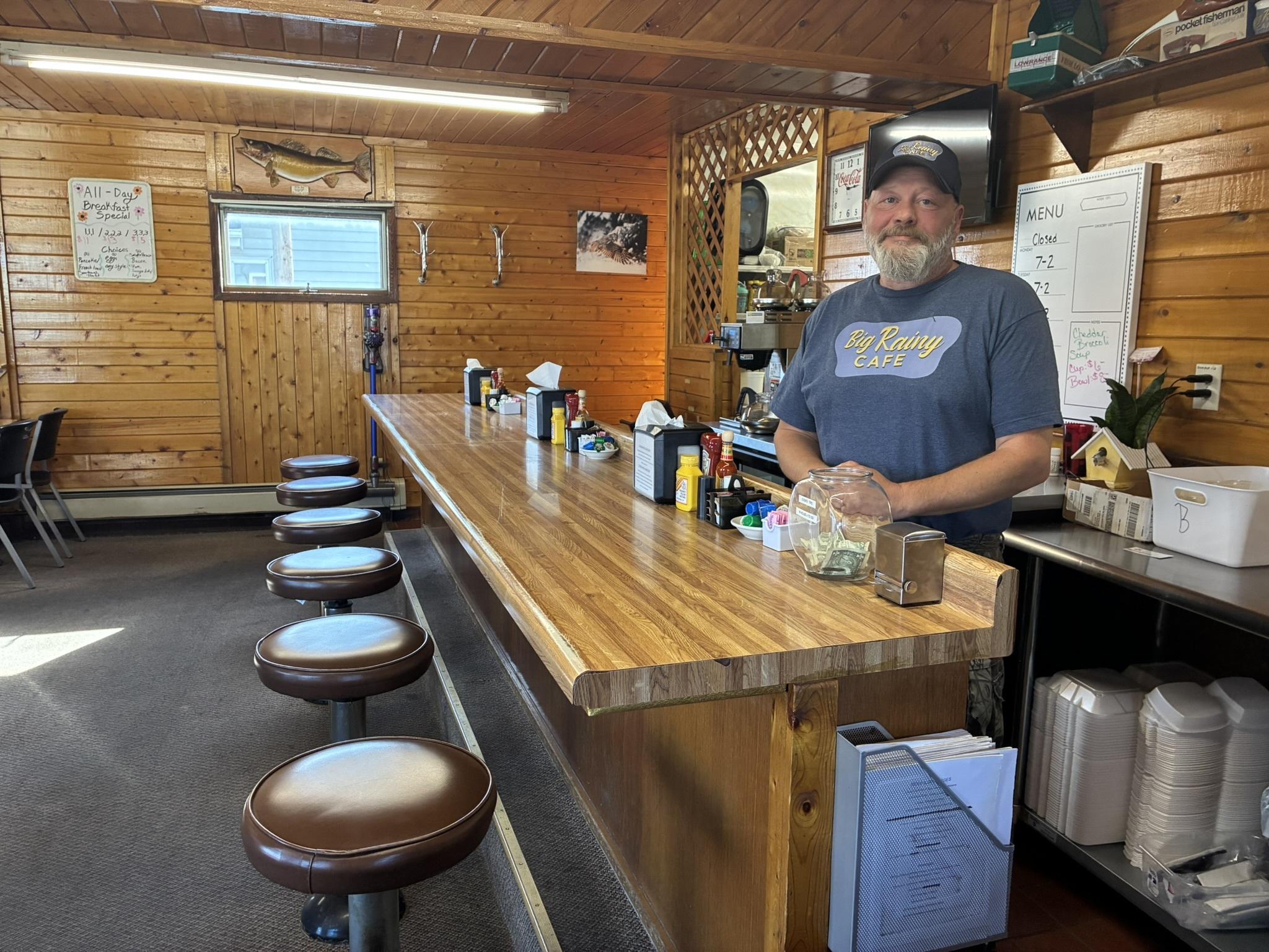 Ben Burgess looks comfortable standing behind the counter of the Big Rainy Café in International Falls.
