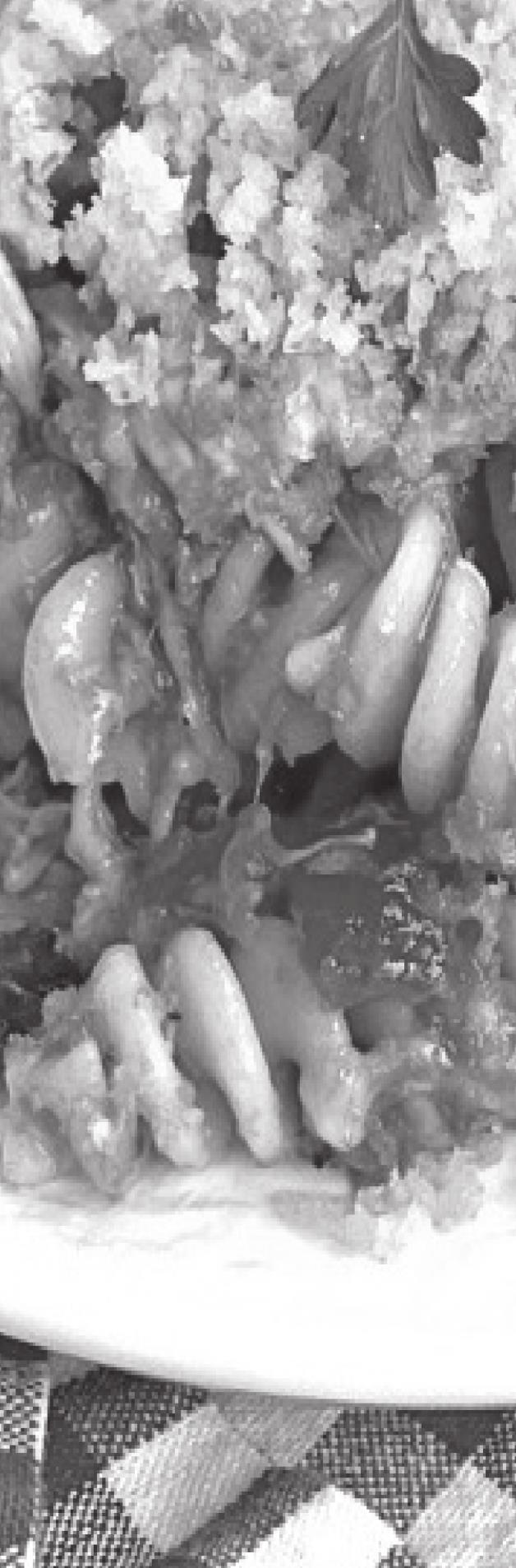 Ingredients: • 1 small rotisserie chicken (pulled into small pieces) • 1/2 lb pasta (about 3 cups dry) • 1 (24oz) jar marinara or spaghetti sauce • 2 cups shredded mozzarella cheese • 1/2 cup grated parmesan • 3/4 cup panko bread crumbs • 2 tbsp melted butter • 1 tsp Italian seasoning • 1/2 tsp garlic powder Instuctions: • Preheat oven to 350 degrees and grease a medium size baking dish • Cook and drain the pasta according to package directions. • Place the drained pasta back into the pot and mix with the marinara sauce, chicken, HALF of the mozzarella, HALF of the parmesan, and 1-2 tsp of Italian seasoning.