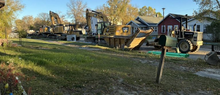 Construction equipment sits on Ninth Street in International Falls, ready to roll into action.